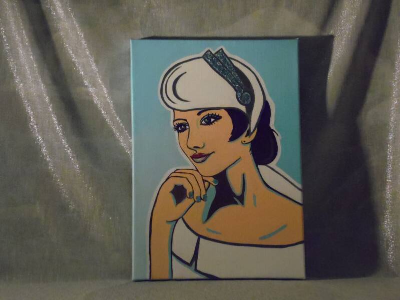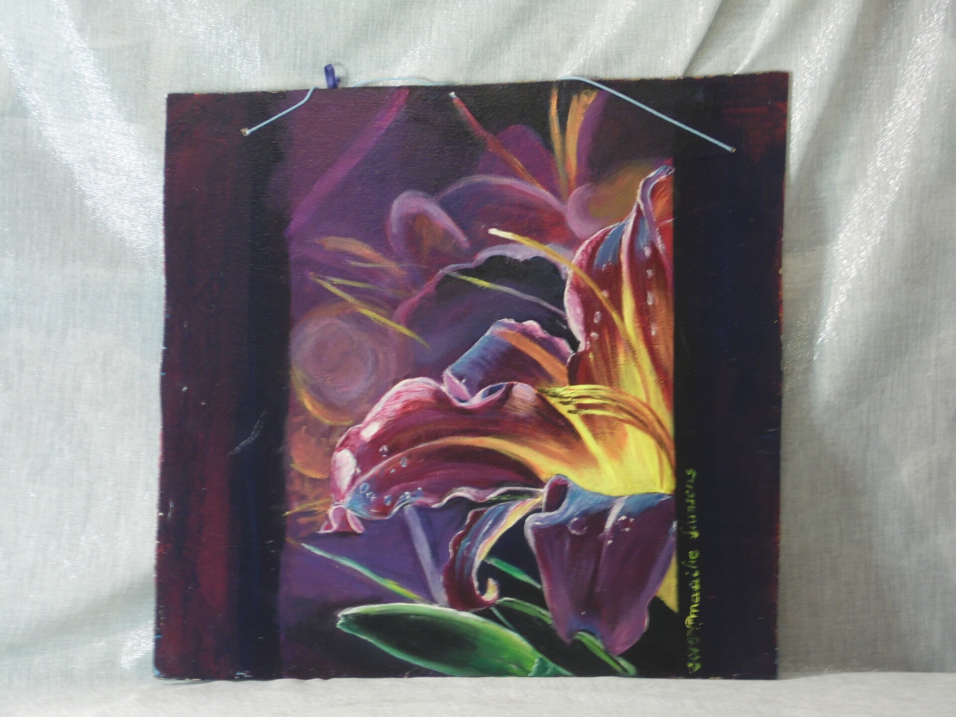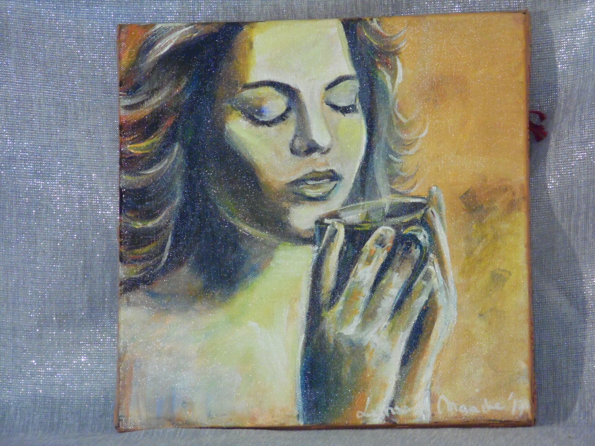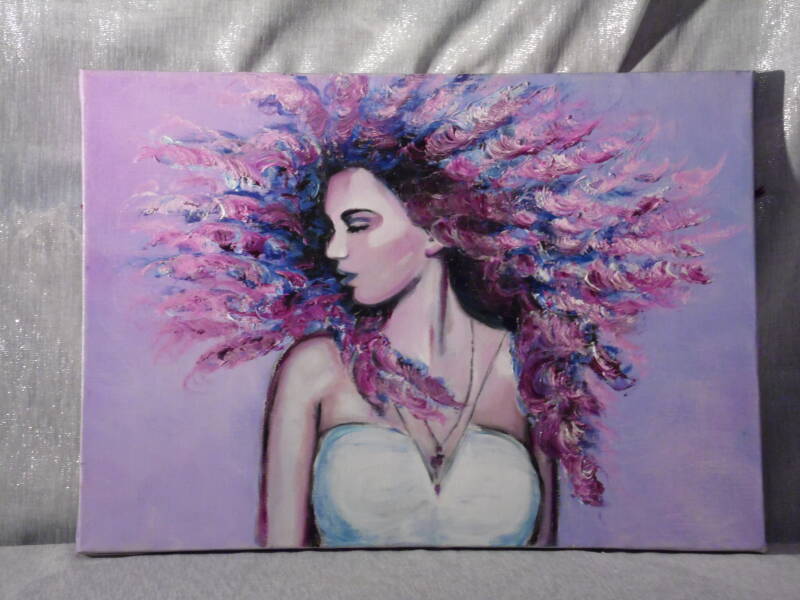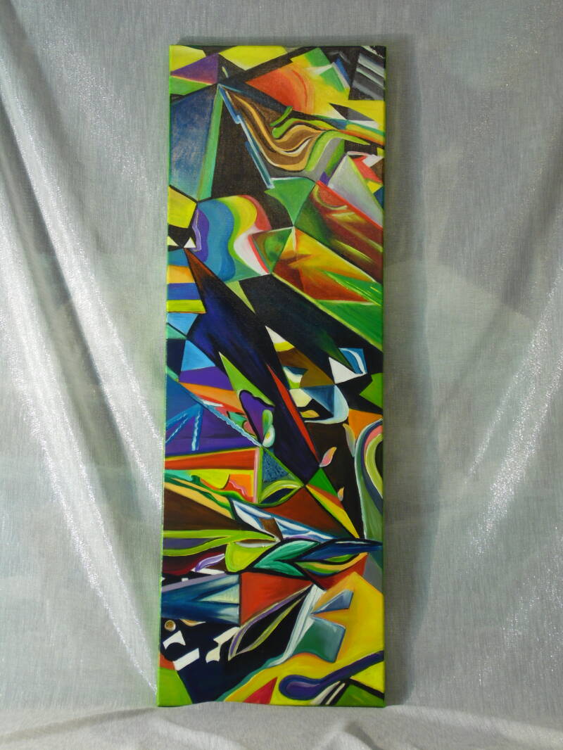 Doek: vlas, Verf: Acryl, Omtrek: hoogte 120 cm - breedte 80 cm