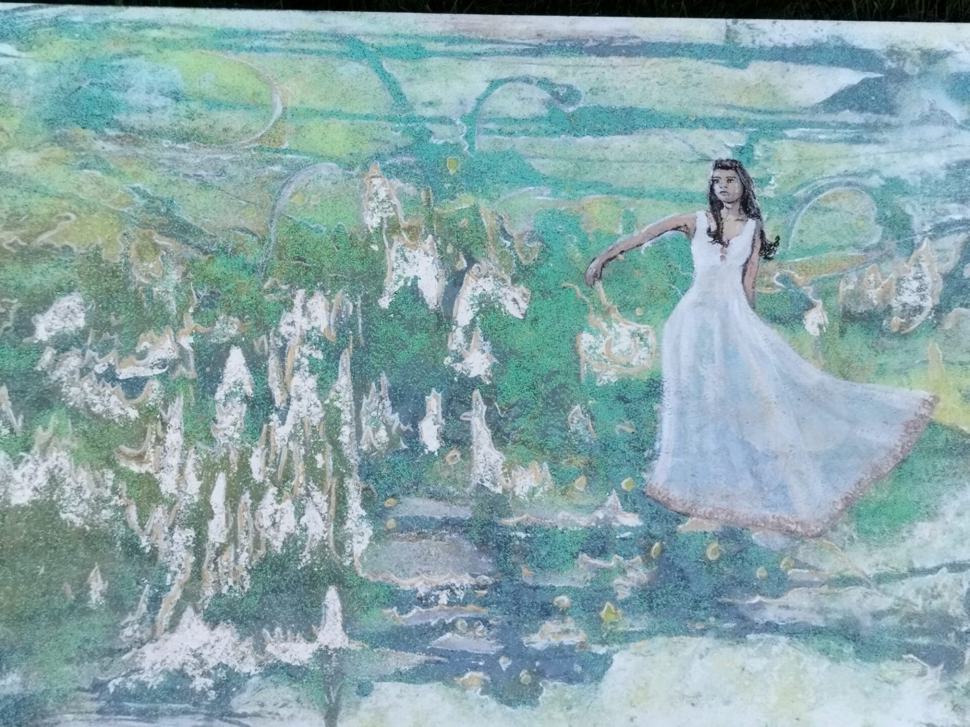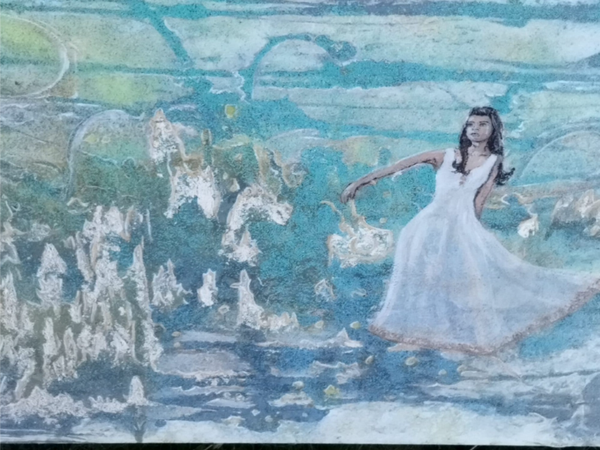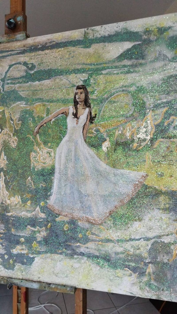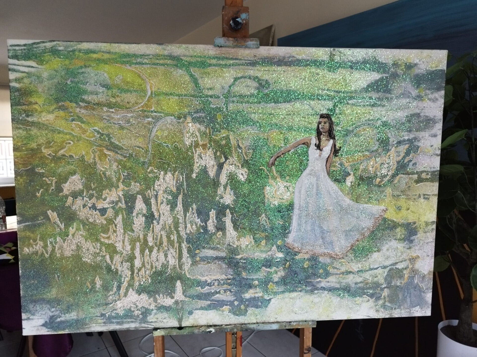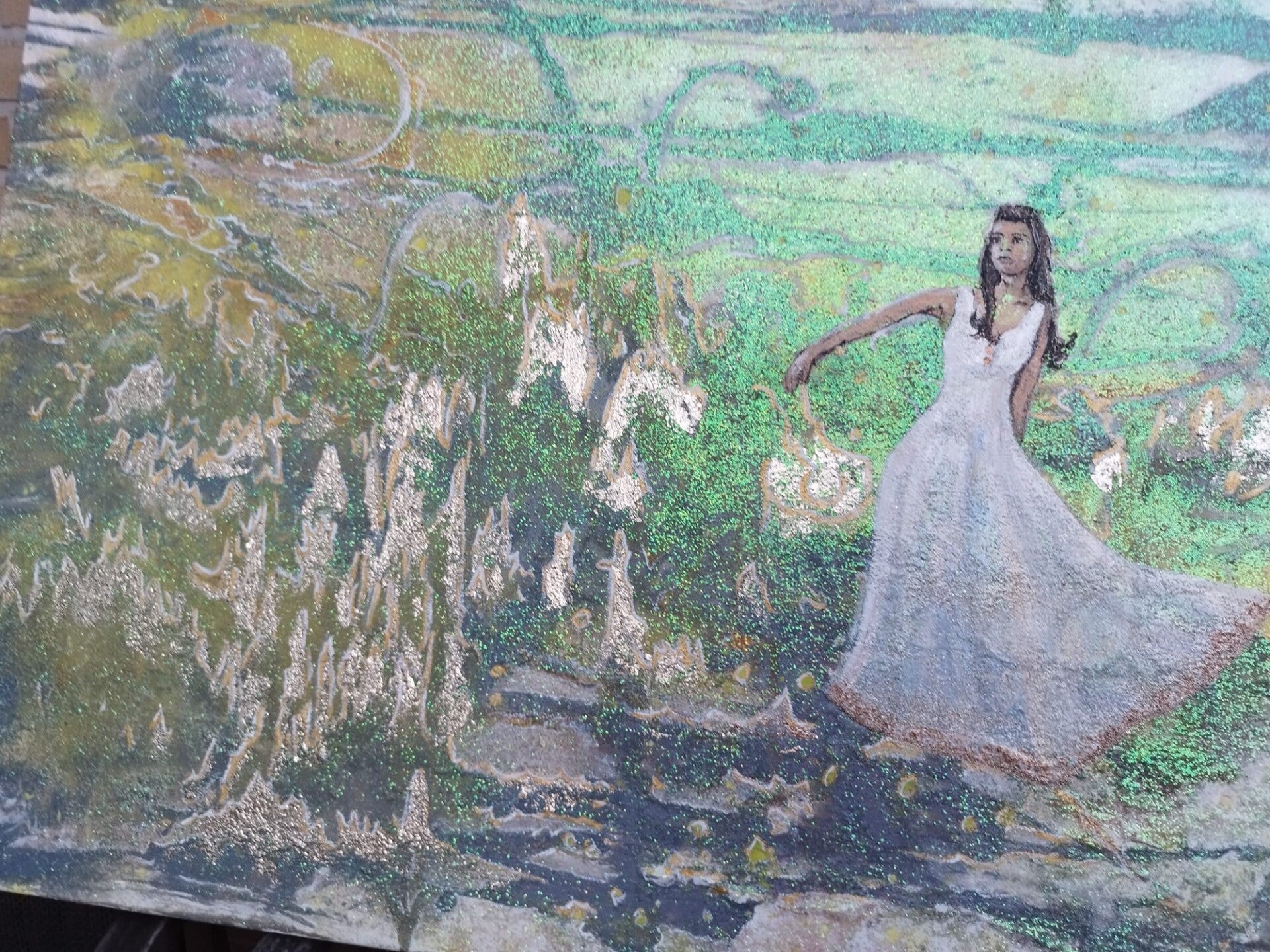 Acryl, glitter en bladgoud