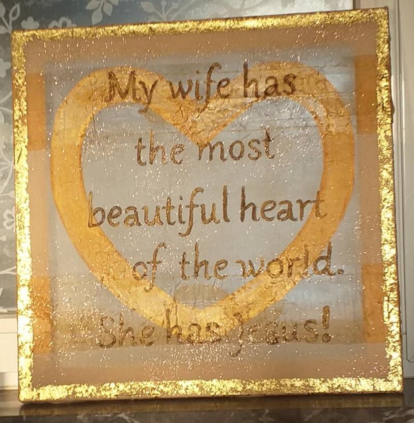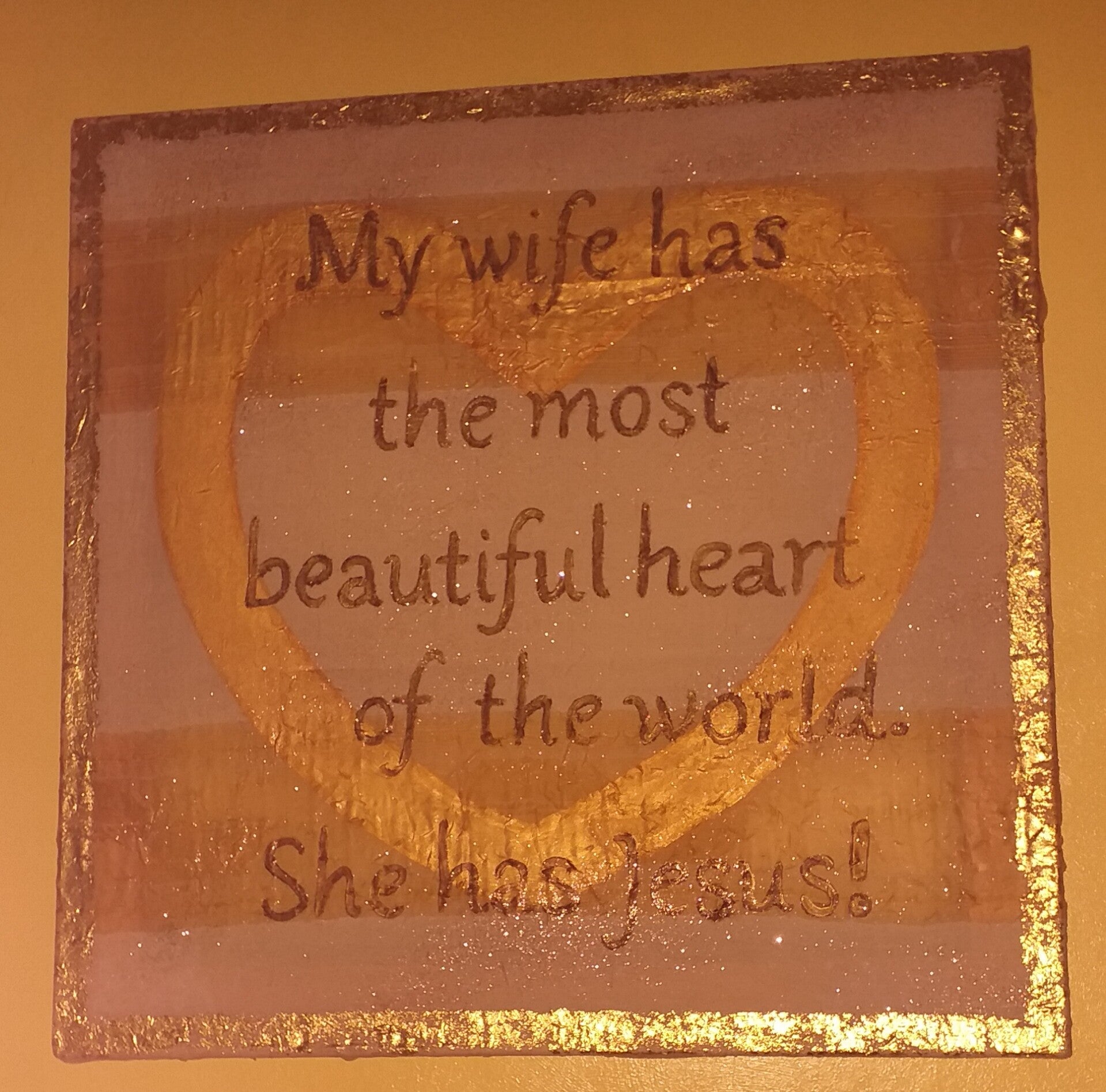 My wife has the most beautiful heart of the world. She has Jesus. Code A2-044