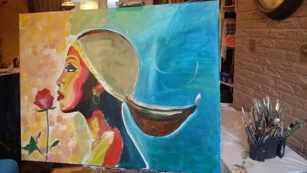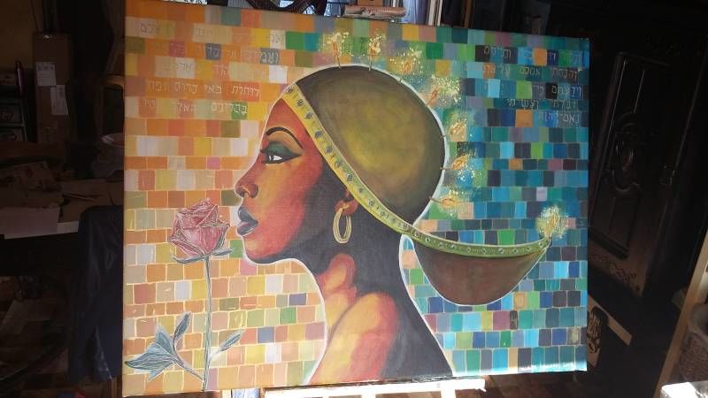Acrylic, vlasdoek, 90 cm op 120 cm