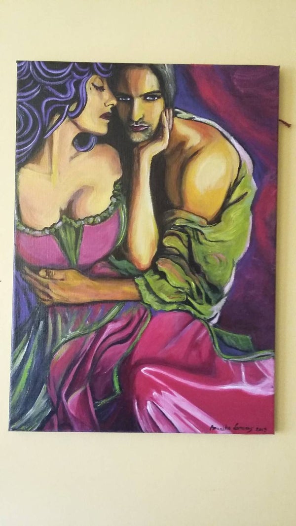 Verf: Acrylic / Maten: H 70 cm ( + frame 77) - Br 50 cm ( + frame 57 cm) / Doek: Vlas